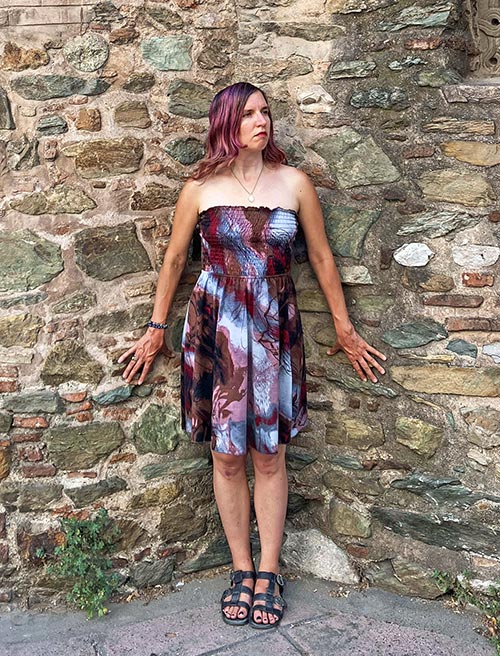 My strapless sundress was purchased from a Clinton, Iowa thrift store by a man with whom I had a complicated relationship.