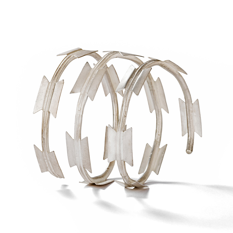 Alexandra Bircken, Gabi Dziuba, "Natodraht", bracelet, 2023. Silver. © VG Bild-Kunst, Photo: Winfried Reinhardt.