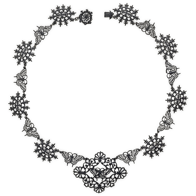 Simon Pierre Devaranne (private foundry), Butterfly necklace, ca. 1840-50, Berlin. Iron, steel, cast, black-fired, assembled. © Stiftung Stadtmuseum Berlin. Photo: Oliver Ziebe.