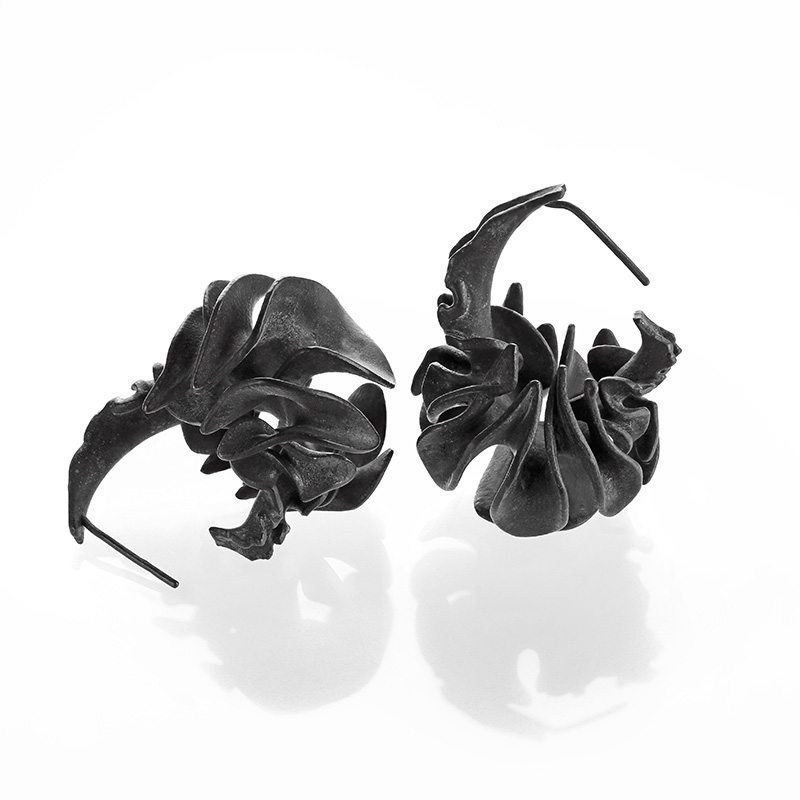 "Flos", earrings, Shape Of Nature series, 2023. Black silver, bronze. Photo: Ekaterina Morgunova.